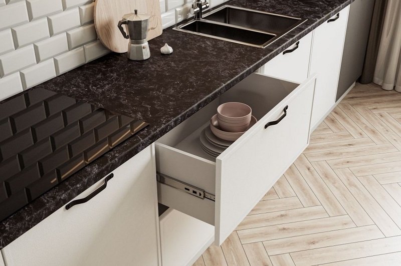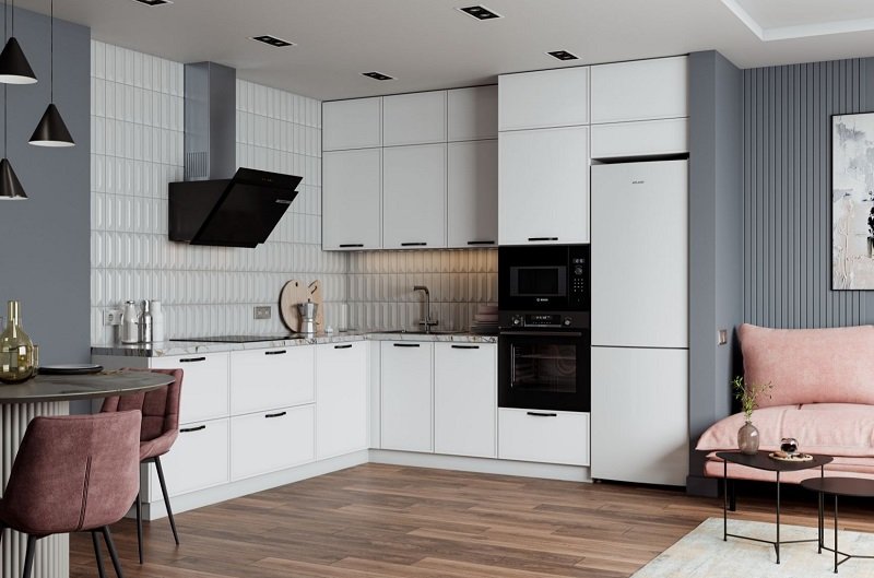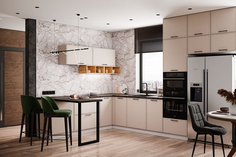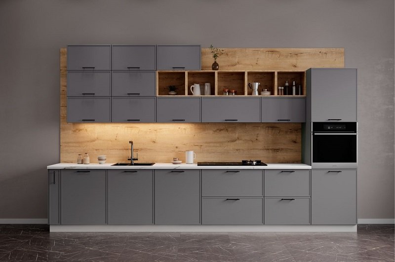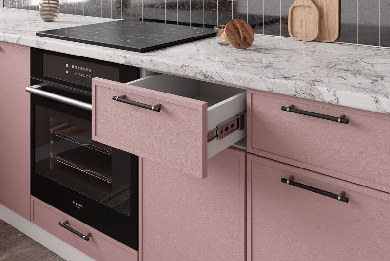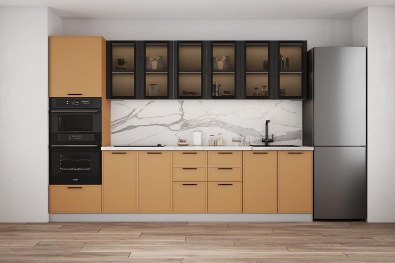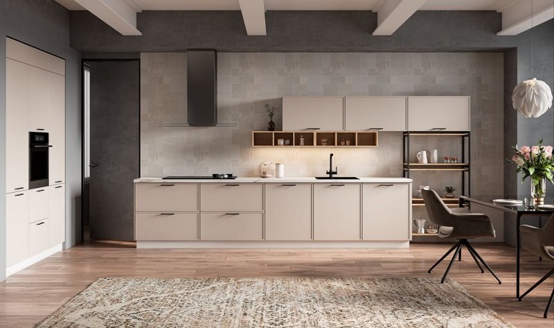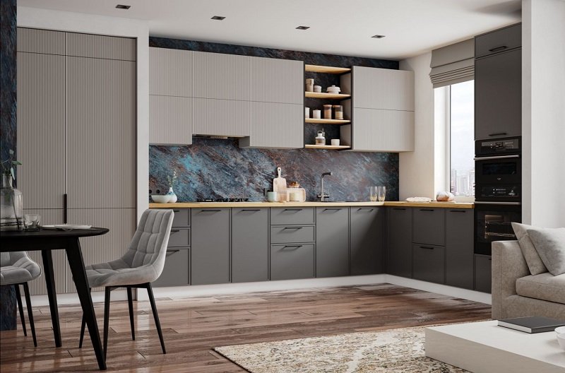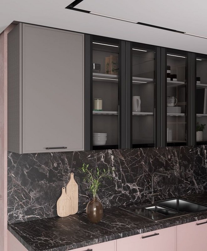 Кухня «Марта» — необычные фасады толщиной 19мм, итальянские тренды, выраженные в удивительных цветах и благородной текстуре «Кожа». Фасады кухни «Марта» это превосходный пример кухонь премиального уровня в эконом сегменте.