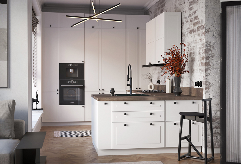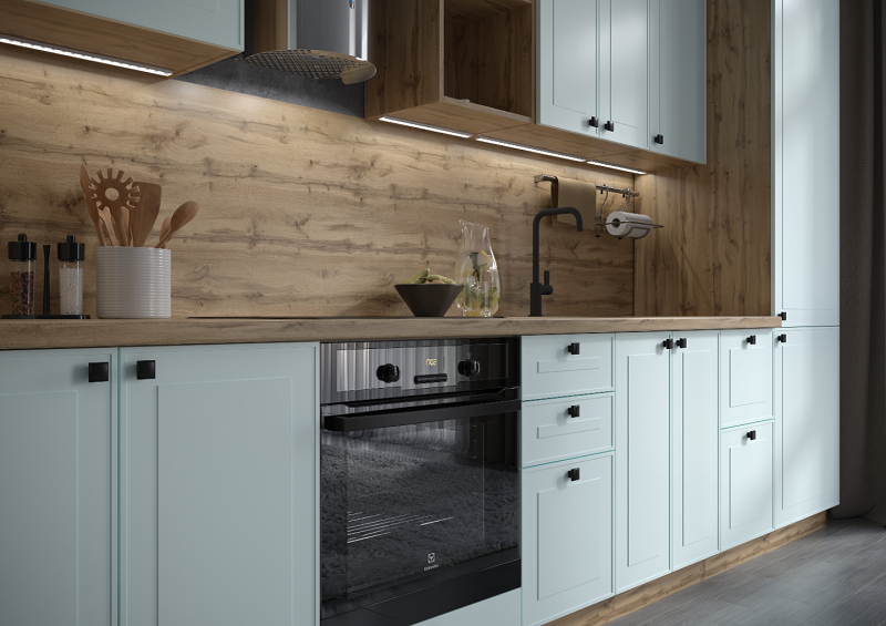 В кухонный линейке «Перфетта Royal» эмаль идеально подчеркивает безупречно выверенную архитектуру фасада. Деликатный блеск краски делает гарнитур еще более выразительным.