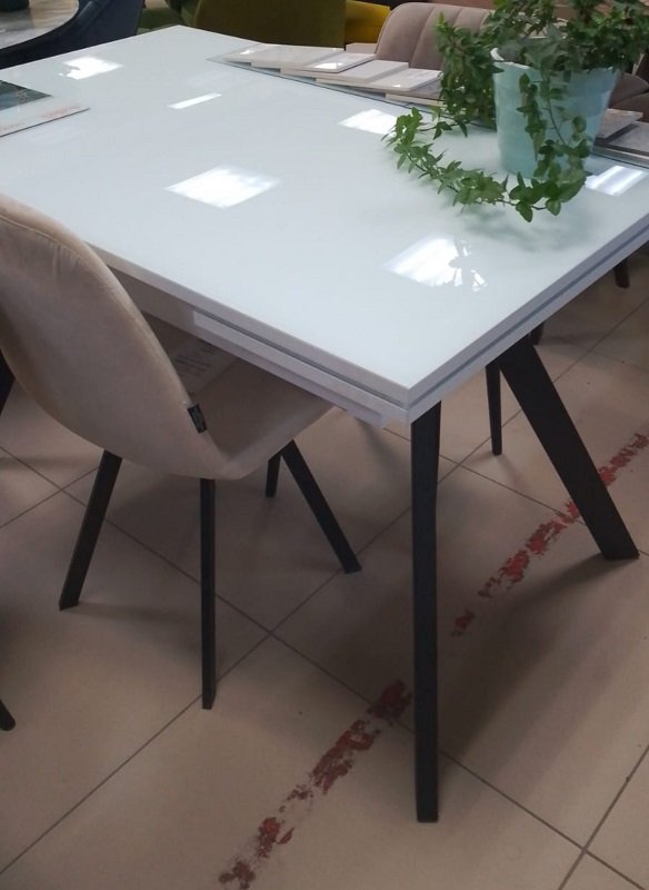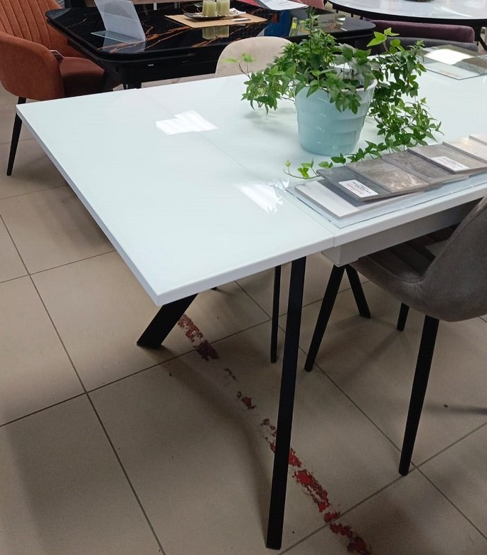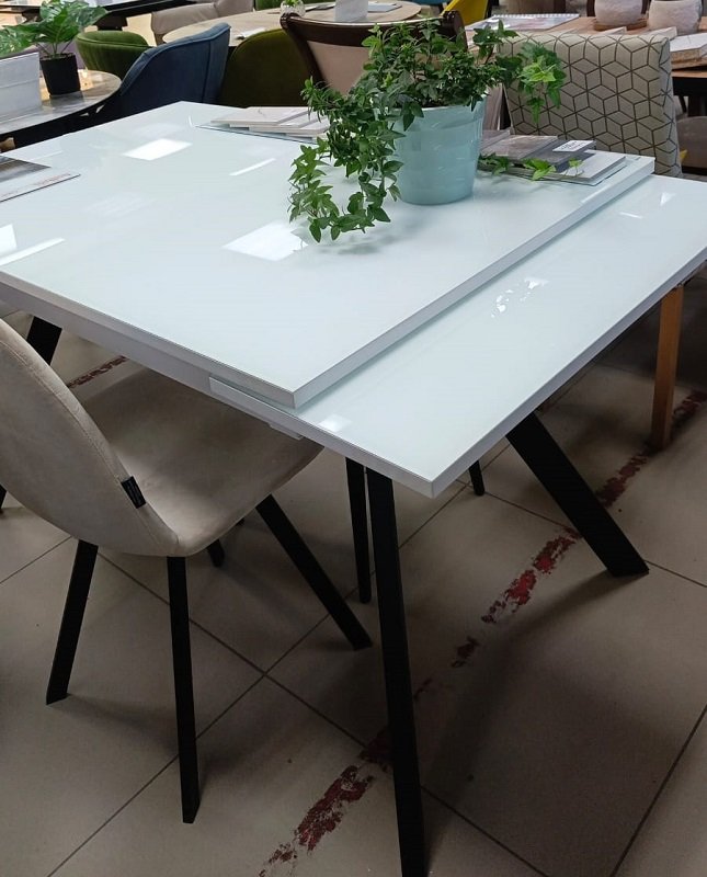 Стол Атлант 120/180 х 80 - стекло белое/ ножка Л черная-1 шт