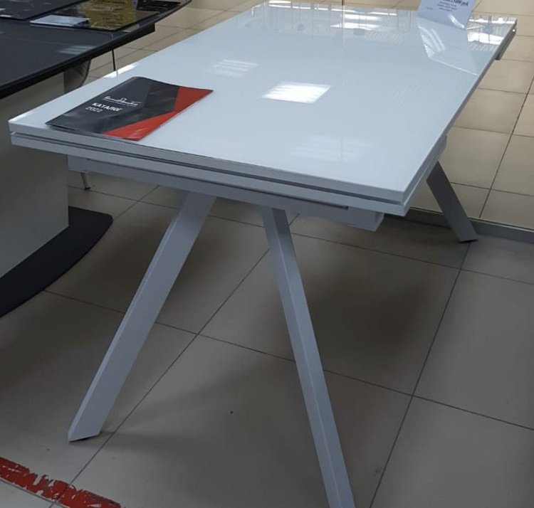 Раскладной стол с полуавтоматической раскладкой , 2 вставки 30 см (со стеклом однотон белый) с каждой стороны