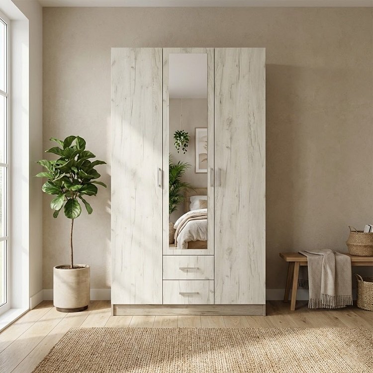 Шкаф 3-х дверный Гармония ШК 601 М станет гармоничным дополнением интерьера любой комнаты. За двумя боковыми распашными дверьми находятся штанги для вешалок-плечиков с верхней одеждой, деловыми костюмами, красивыми платьями и другой одеждой. Полки в центральной части шкафа и два выдвижных ящика пригодятся для сложенной одежды, постельного и нижнего белья, разнообразных аксессуаров и коробок с обувью.