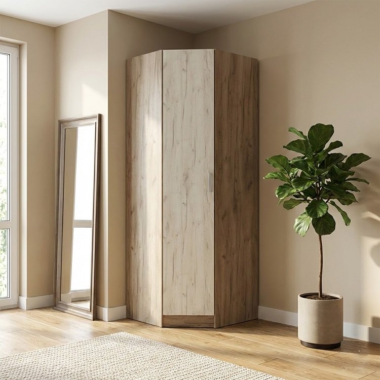 Шкаф угловой Гармония ШУ 601 М станет гармоничным дополнением интерьера любой комнаты. За распашной дверью находится штанга для вешалок-плечиков с верхней одеждой, деловыми костюмами, красивыми платьями и другой одеждой. Полки пригодятся для сложенной одежды, постельного и нижнего белья, разнообразных аксессуаров и коробок с обувью.