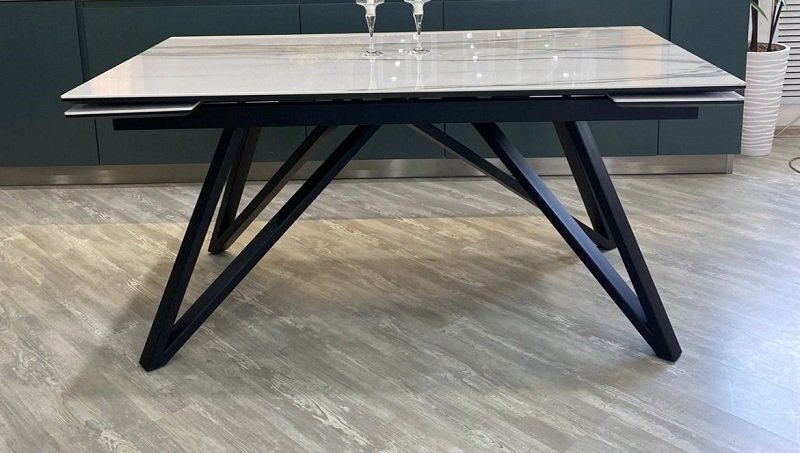 Стол раскладывается с торцов, используется полуавтоматический механизм раздвижения с очень плавным ходом. Размер стола 160х90 см, раскладывается до 220 см и 180х90 см-раскладывается на 240 см