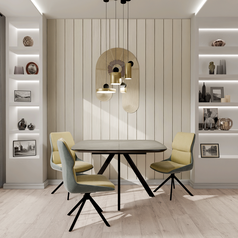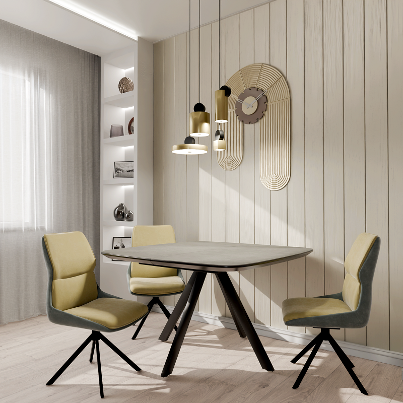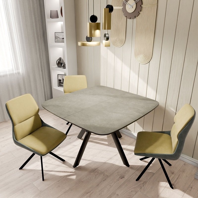 Стол квадратный со скошенными углами, диаметром 100 см, 110 см или 120 см, с раздвижным механизмом "Бабочка" (вставка с таким же материалом как и столешница размером 32 /40 см)