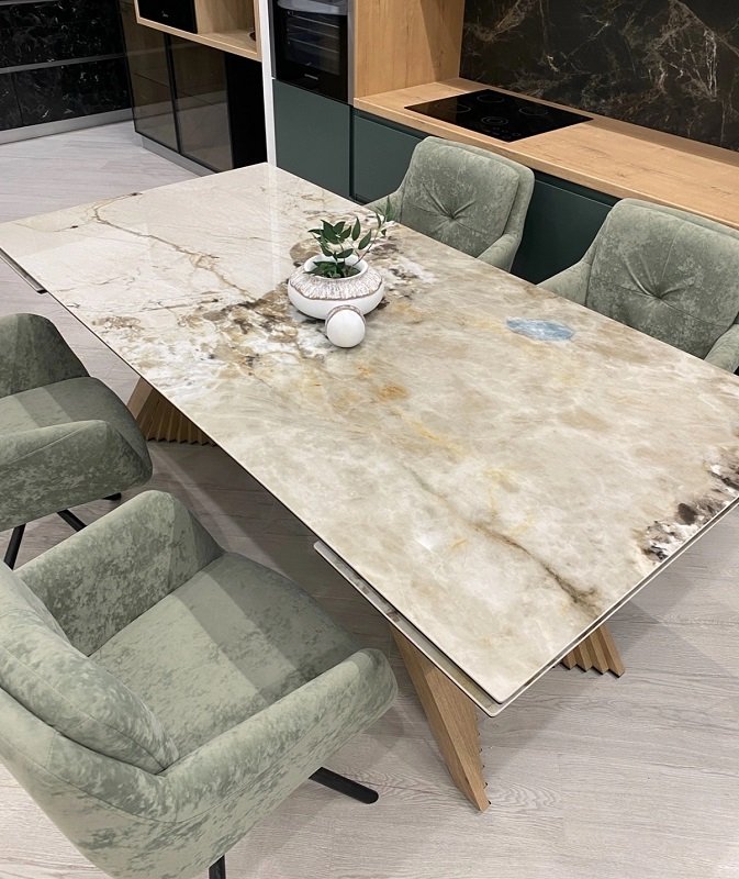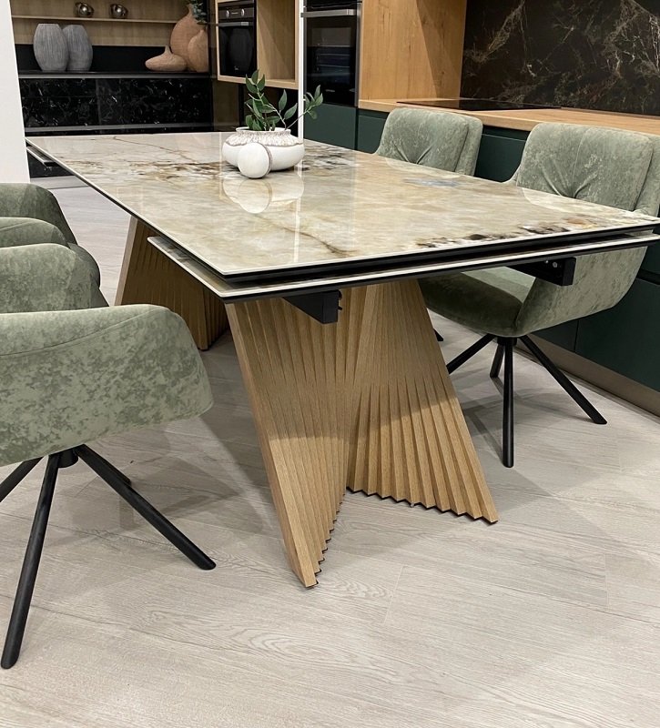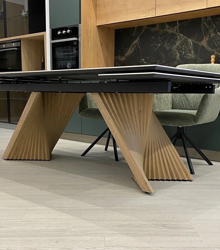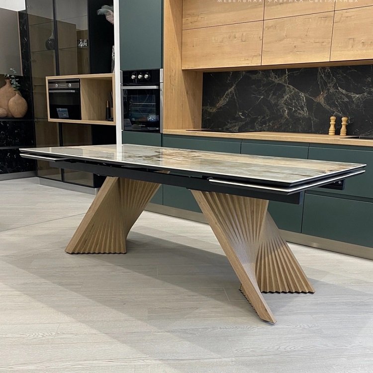 Обеденный стол Манхэттен - это не просто стол! Это настоящая архитектурная доминанта для вашей гостиной! . Что делает «Манхэттен» особенным: · Монолитная устойчивость даже в разложенном состоянии · Возможность выбрать любой оттенок дерева под ваш интерьер · Варианты столешниц: эффектная керамика или элегантное стекло