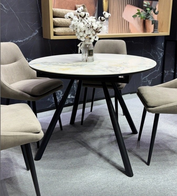 Обеденный стол "Нева (круг)" раздвижной. Столешница- керамическая на основе из МДФ -создает эффект армирование. Цвет керамики и МДФ-на ваш выбор!))