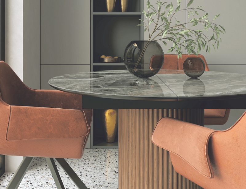 В итоге стол Рапсодия может выглядеть очень по-разному. Но вы всегда узнаете его по нестандартному подстолью .