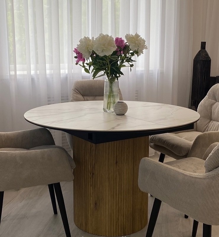 Круглый раскладной стол Рапсодия с ножкой из МДФ