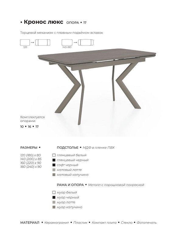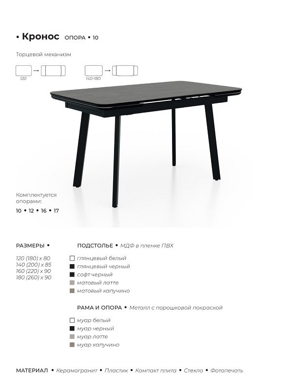 На сайте указана минимальная стоимость стола Кронос-П 1200/1800 х 800 в стекле однотон с опрой №10 или №12