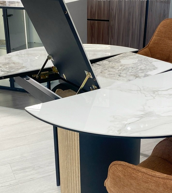 • Идеальный размер: компактный диаметр от 100 смдо 115 см в диаметре , в собранном виде- для романтических вечеров и раскладной механизм «бабочка» для праздников с друзьями — превращается в 140-155 см (в зависимости от размера стола)!