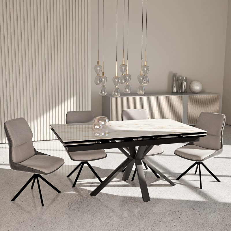Прямоугольный обеденный стол размером 110 см на 70 см, 120 см на 80 см, 140 см на 85 см или 160 см на 90 см, с раскладкой на 170, 180, 200 или 220 см.