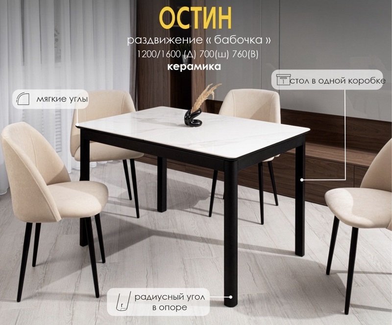 Ультрамодный обеденный стол "Остин" со вставкой "бабочка"- 40 см!!! Столешница изготовлена из МДФ+керамика 1 категории производства Китай-выбор очень большой!!!!.