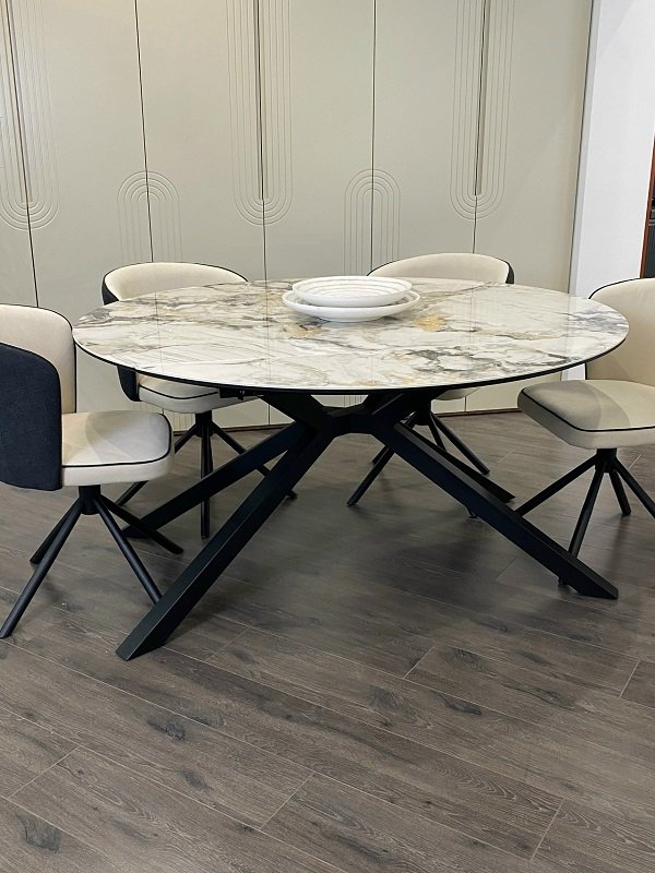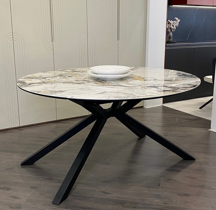 Но при раскладке, вставки по бокам-каждое крыло по 30 см- превращается в огромный круглый стол диаметром 150 см!!!