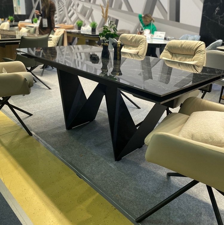 Обеденный стол Вивальди с необычной опорой в виде латинской буквы W.