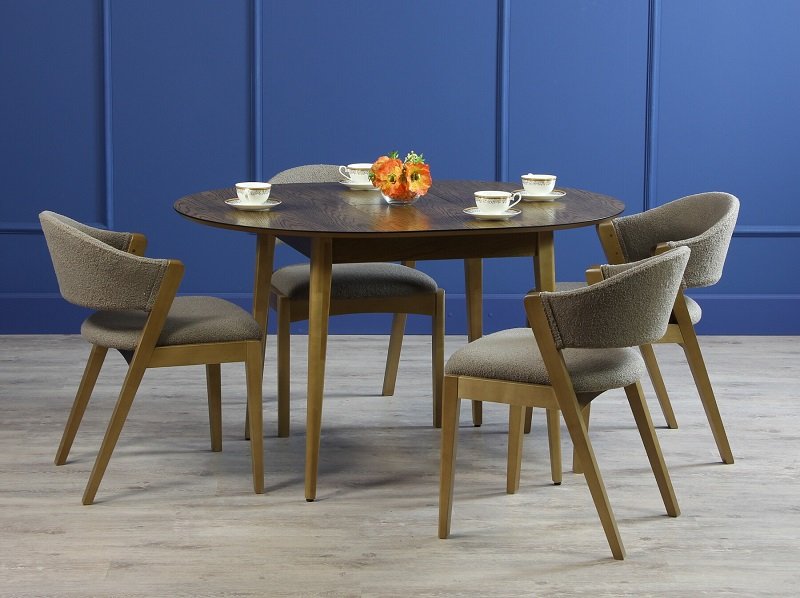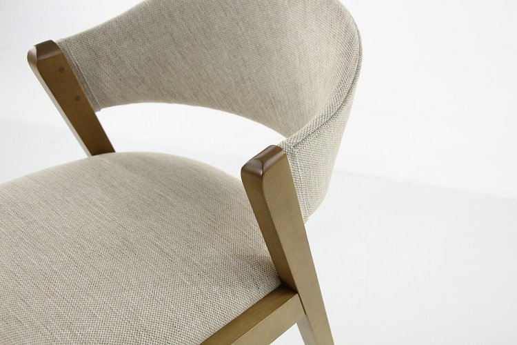 Стул может быть изготовлен в различных сочетаниях тонов дерева и обивочных тканей.