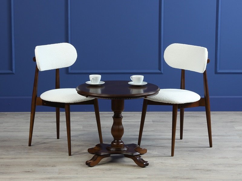 Стул может быть изготовлен в различных сочетаниях тонов дерева и обивочных тканей.