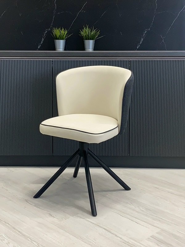 Стул для кухни в современном стиле с очень удобной полукруглой спинкой и мягким основанием. Ножки стула металлические окрашенные порошковой краской (белый, черный, серый, графит, матовое золото, бронза), обивка ткань.